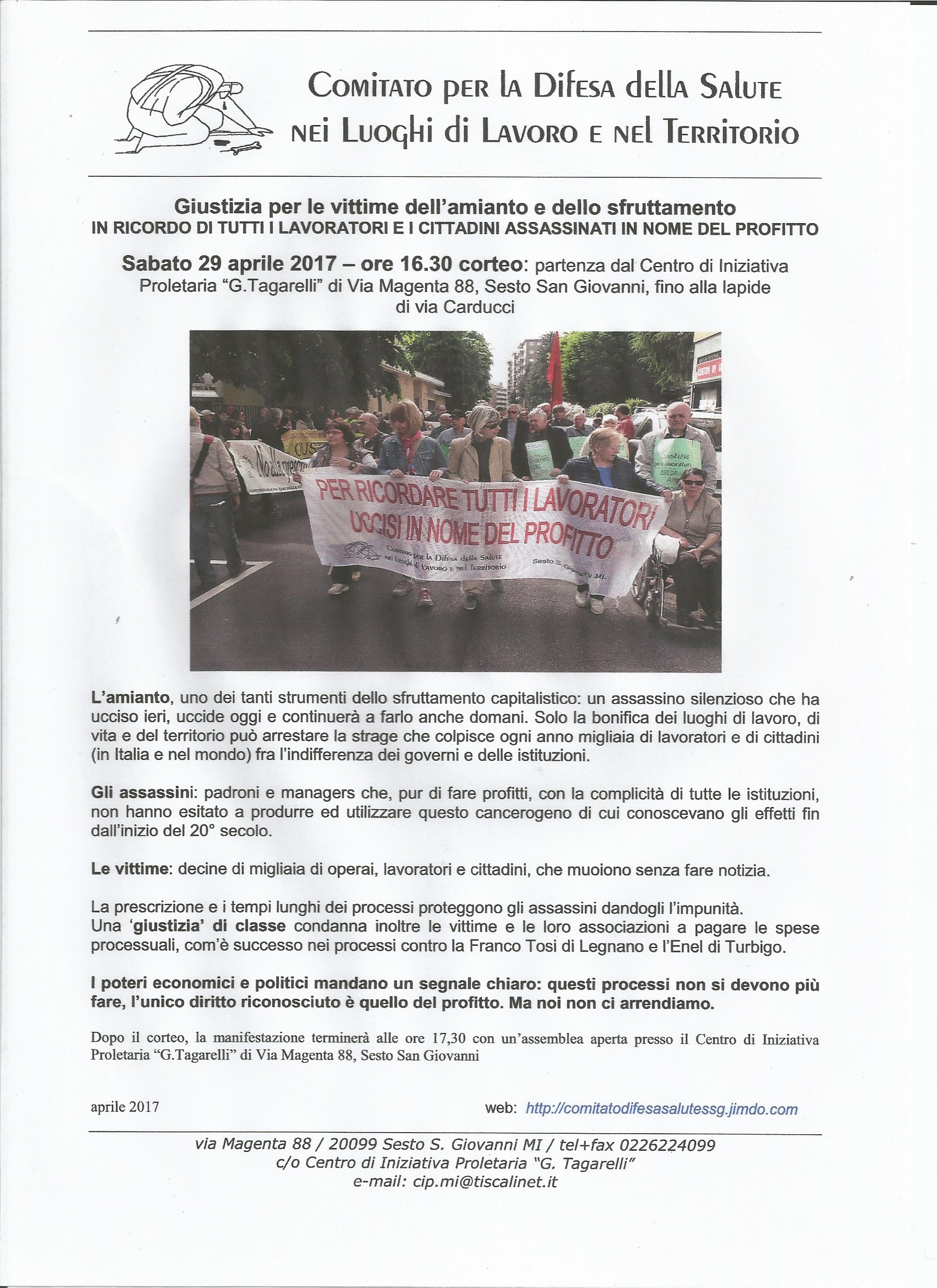 Michele Michelino, nato a Casalpusterlengo (LO) nel 1949, è stato operaio nel reparto cavi della ditta Pirelli S.p.A. di Milano (1966-1974), poi nel reparto forgia della ditta Breda Fucine S.p.A. di Sesto San Giovanni (MI) (1976-1997) e dal 1997 al 2007 è stato operaio nel settore manutenzione (elettricista) del Comune di Milano. Presidente del Comitato per la Difesa della Salute nei Luoghi di Lavoro e nel Territorio, è stato fondatore del Centro di Iniziativa Proletaria “G. Tagarelli” di Sesto San Giovanni.